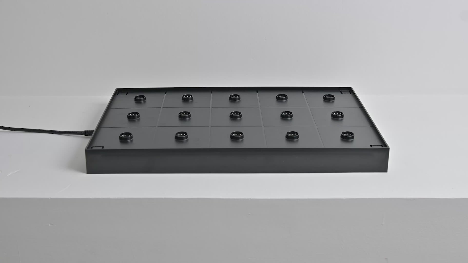 Mit der 15-FACH LADESTATION können bis zu 15 SEOUL/NEAPEL MICRO Akkuleuchten gleichzeitig geladen werden. Einfach die Leuchte auf einen der 15 Kontakte der Ladestation stellen.